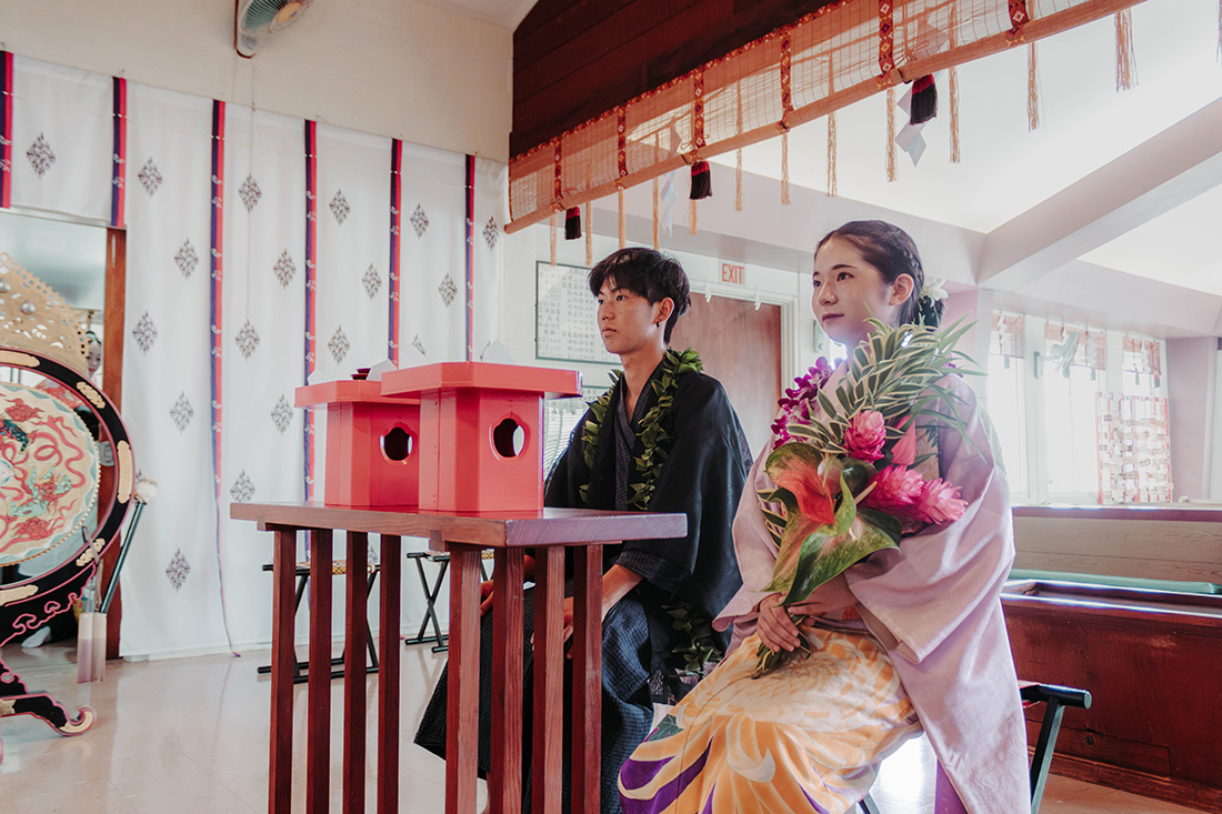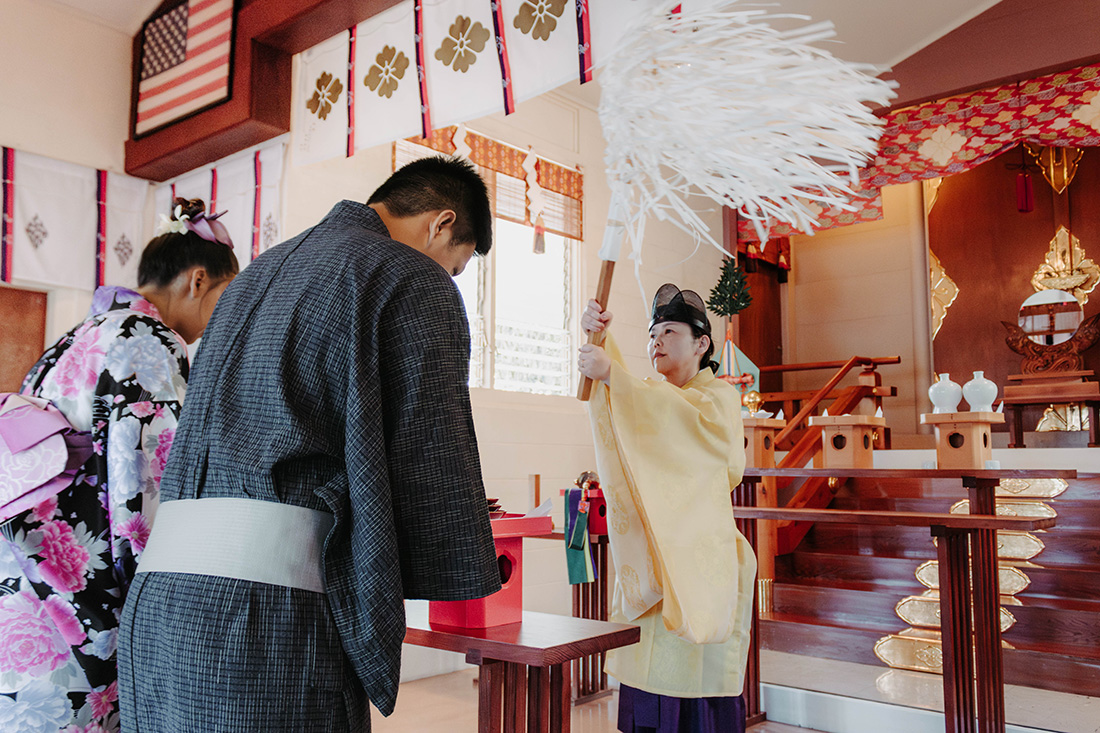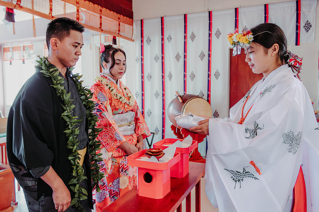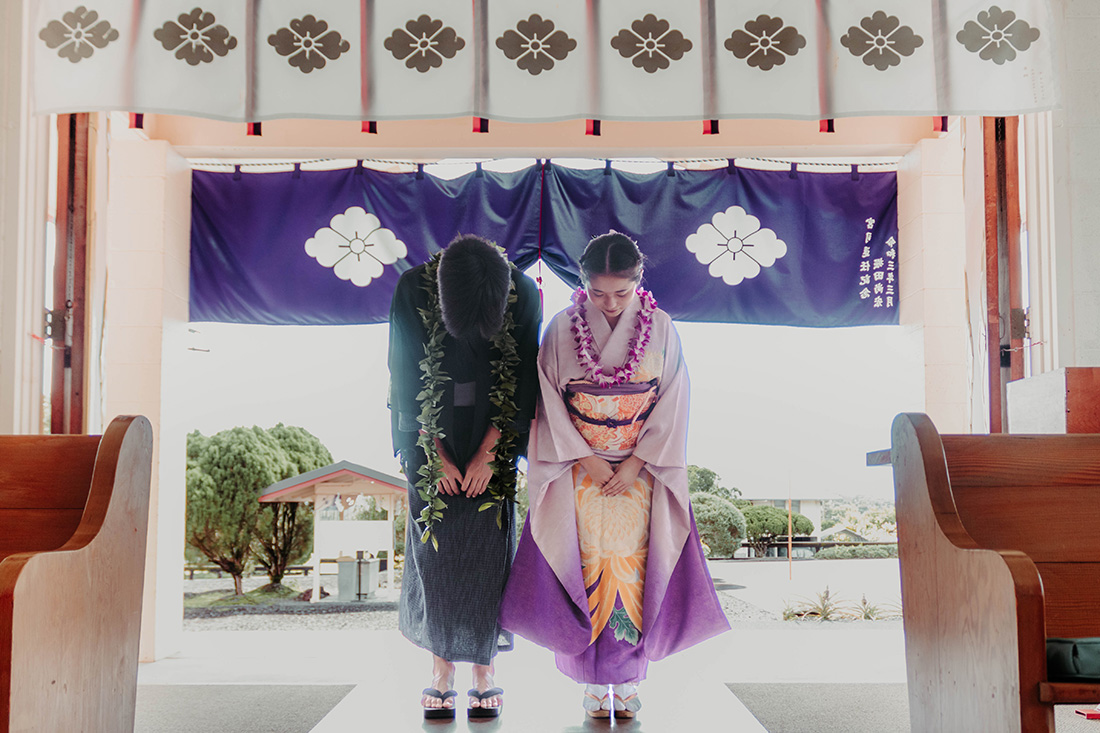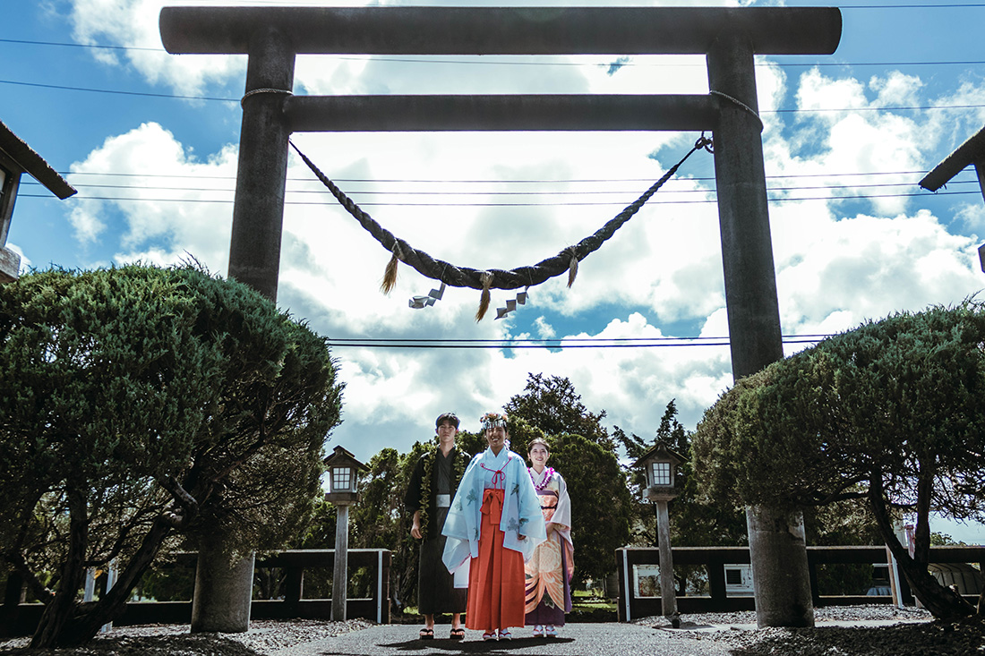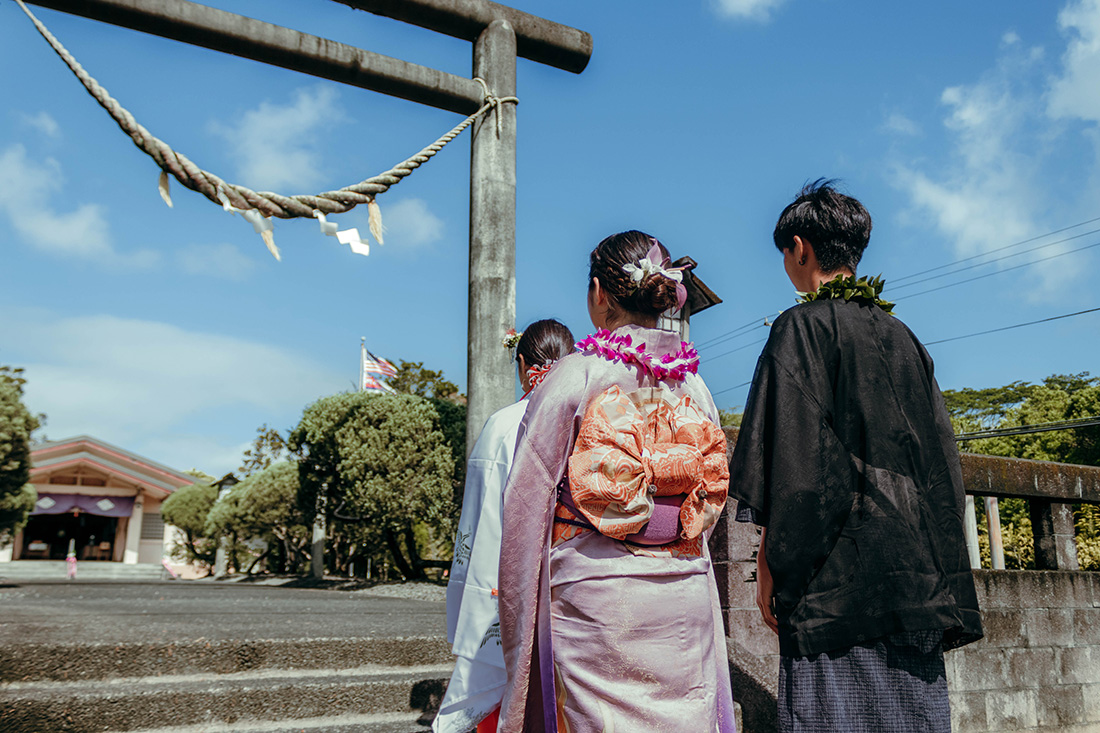 ハワイ島の西東側、ヒロのタウンに位置。周囲はヒロの地元の人が住む住宅地。ダブルツリーヒルトンのグランドナニロアホテルから車で5分。神社から車で5分で行けるリリウオカラニガーデンでは、緑いっぱいの日本庭園で、太鼓橋やガゼボを背景に写真撮影ができます。少し足を延ばして、火山国立公園で溶岩の迫力とトロピカルな雰囲気がいっぱいの写真も撮れます。